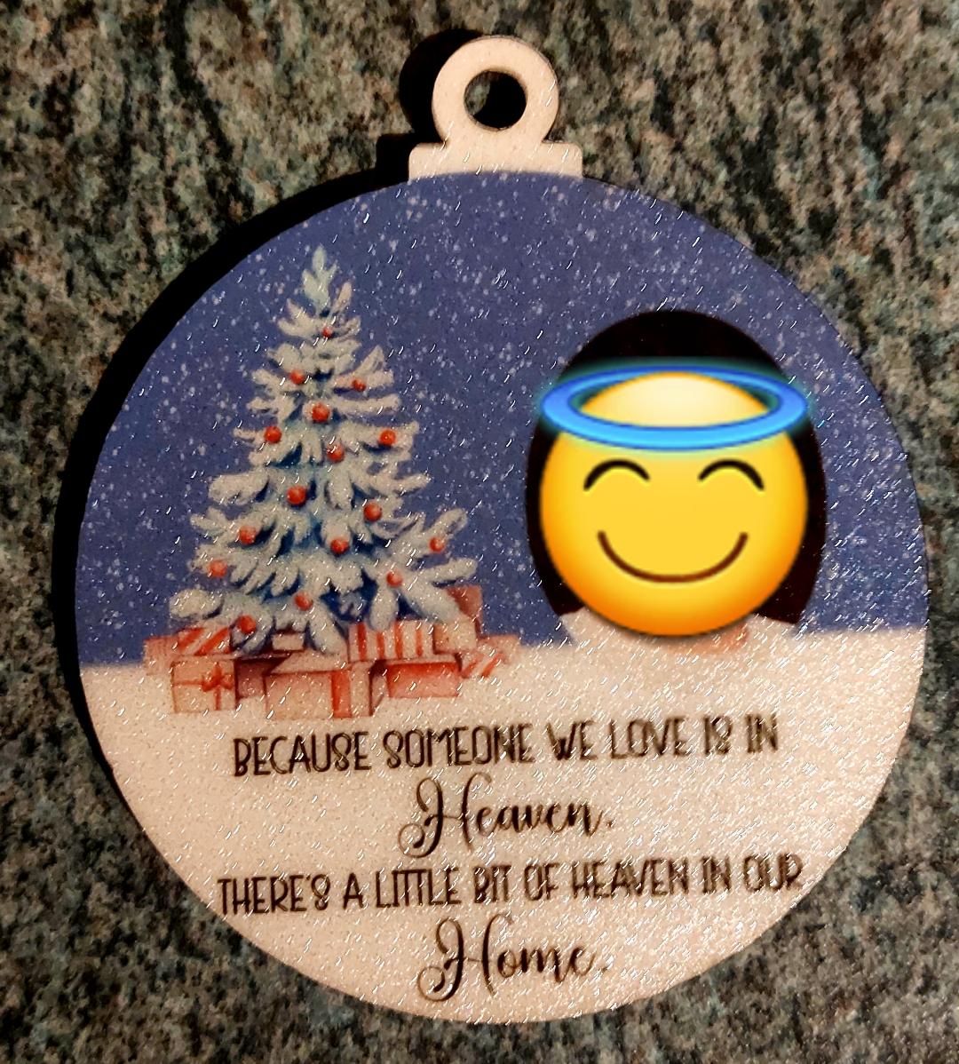 Please note all designs are for illustration purposes and you will receive a MDF glitter bauble. The baubles are 8cm Round with a hanging loop at the top. Printed on both Sides.