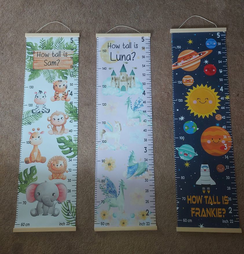 Beautiful personalised colourful height charts to keep track of how tall your child is growing.