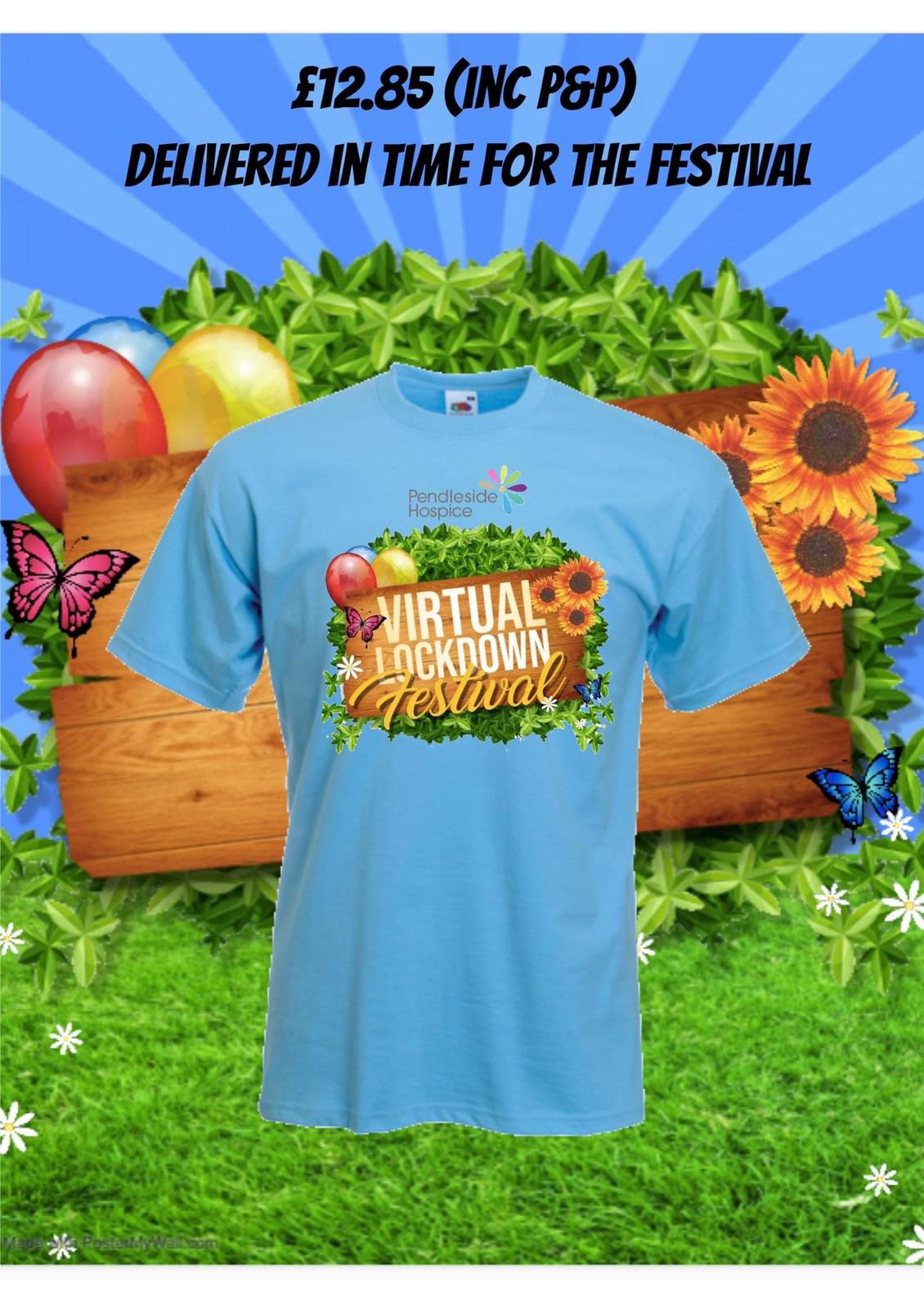 Printed with the Virtual Lockdown Festival Logo and Raising Funds for Pendleside Hospice.